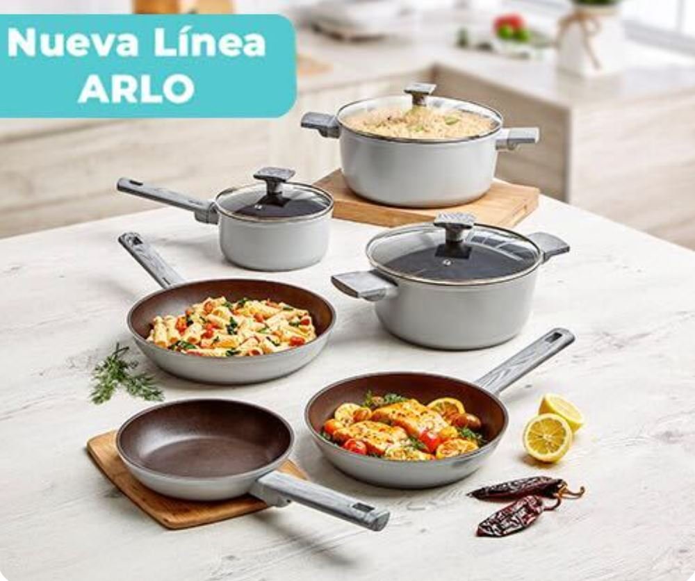 Eleva tus recetas con nuestra batería de cocina profesional, diseñada para una distribución de calor uniforme y máxima eficiencia. Si buscas los mejores sartenes antiadherentes, ollas de acero inoxidable o juegos de cocina algunos libres de PFOA, nuestra gama combina durabilidad extrema con tecnología de punta. Estos utensilios de cocina de alta gama son compatibles con inducción y fáciles de limpiar, ideales para quienes desean cocinar sin grasa y con resultados de chef. ¡Invierte en menaje de cocina resistente y transforma cada comida en una experiencia gourmet!