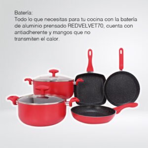 $3,199.00 El precio original era: $3,199.00.$2,900.00El precio actual es: $2,900.00.Contenido: 11 pzas – 1 cacerola de 28 cm y 5 Lt con tapa (2 pzas) – 1 cacerola de 24 cm 3.5 Lt con tapa (2 pzas) – 1 sarten cuadrado de 25 cm – 1 crepera de 26 cm – 1 sarten de 24 cm – 1 cuchillo para chef de 32 cm – 1 cuchillo para pan de 32 cm – 1 cuchillo de cocina de 23 cm – 1 cuchillo para fruta de 19 cm Material: Aluminio y vidrio templado Color: Rojo y recubrimiento antiadherente ceramico negro – Base difusora de calor – Mangos y agarraderas suaves al tacto, ergonomicos y antiderrapantes – Tapas de vidrio templado con valvula metalica para escape de vapor – Compatible con estufa de gas y electrica Consideraciones generales: – Lavar con esponja suave – No utilizar fibras abrasivas – Evitar el choque termico – Utilizar utensilios de silicon o nylon para evitar rayaduras – No es compatible con lavavajillas – No es compatible con horno de microondas