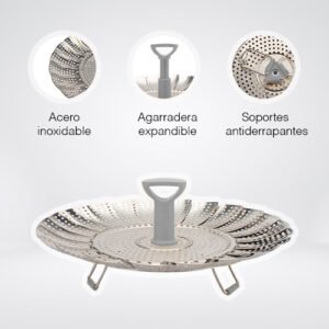 CONTENIDO: 1 PZ MATERIAL: ACERO INOXIDABLE Y PLÁSTICO LIBRE DE BPA MEDIDAS: CERRADA 18 CM DE DIÁMETRO Y ABIERTA HASTA 28 CM DE DIÁMETRO – LA CESTA VAPORERA EXPANDIBLE DE ACERO INOXIDABLE TE PERMITE COCINAR UNA VARIEDAD DE ALIMENTOS AL VAPOR, DESDE VERDURAS HASTA MARISCOS, MANTENIENDO SUS NUTRIENTES ESENCIALES Y SABORES NATURALES. – SU DISEÑO EXPANDIBLE SE AJUSTA FÁCILMENTE A DIFERENTES TAMAÑOS DE OLLAS, PERMITIÉNDOTE ADAPTARLA A TUS NECESIDADES CULINARIAS Y OPTIMIZANDO EL ESPACIO EN TU COCINA. – EL ACERO INOXIDABLE GARANTIZA RESISTENCIA A LA CORROSIÓN Y DURABILIDAD, LO QUE SIGNIFICA QUE TU CESTA VAPORERA PERMANECERÁ EN EXCELENTE ESTADO A LO LARGO DEL TIEMPO. – ES FÁCIL DE LIMPIAR Y MANTENER HIGIÉNICO, AHORRÁNDOTE TIEMPO EN LA COCINA. – LA CALIDAD DEL ACERO INOXIDABLE ASEGURA UNA DISTRIBUCIÓN UNIFORME DEL CALOR, LO QUE SE TRADUCE EN UNA COCCIÓN UNIFORME DE LOS ALIMENTOS. – AL COCINAR AL VAPOR, SE CONSERVAN MÁS NUTRIENTES EN COMPARACIÓN CON OTROS MÉTODOS DE COCCIÓN, CONTRIBUYENDO A UNA ALIMENTACIÓN MÁS SALUDABLE. – SU DISEÑO SIMPLE Y AJUSTABLE LA HACE FÁCIL DE USAR, INCLUSO PARA PRINCIPIANTES EN LA COCINA. – PUEDES UTILIZARLA PARA PREPARAR COMIDAS SALUDABLES DE MANERA RÁPIDA Y EFICIENTE, IDEAL PARA AQUELLOS CON UN ESTILO DE VIDA OCUPADO. – LA COCCIÓN AL VAPOR SUELE REQUERIR MENOS ENERGÍA QUE OTROS MÉTODOS DE COCCIÓN, HACIENDO QUE TU COCINA SEA MÁS EFICIENTE DESDE EL PUNTO DE VISTA ENERGÉTICO. CONSIDERACIONES GENERALES: – DESPUÉS DE CADA USO, LAVAR LA CESTA CON AGUA TIBIA Y DETERGENTE SUAVE. EVITANDO EL USO DE PRODUCTOS ABRASIVOS QUE PUEDAN DAÑAR EL ACERO INOXIDABLE. – ASEGÚRARSE DE QUE LA CESTA ESTÉ COMPLETAMENTE SECA ANTES DE GUARDARLA PARA PREVENIR LA FORMACIÓN DE ÓXIDO. – ALMACENAR LA CESTA EN UN LUGAR SECO Y FRESCO. – PARA MANTENER SU FORMA Y FUNCIONALIDAD, EVITAR GOLPEAR LA CESTA CONTRA SUPERFICIES DURAS. – SIEMPRE COLOCAR SUFICIENTE AGUA EN LA OLLA DURANTE EL PROCESO DE COCCIÓN AL VAPOR PARA EVITAR QUE LA CESTA SE DAÑE POR EL CALOR DIRECTO. – EVITAR SOBRECARGAR LA CESTA CON ALIMENTOS. ESTO NO SOLO GARANTIZA UNA COCCIÓN ADECUADA, SINO QUE TAMBIÉN PROLONGA LA VIDA ÚTIL DEL PRODUCTO. – DESPUÉS DE LA LIMPIEZA, SECAR LA CESTA RÁPIDAMENTE PARA EVITAR MANCHAS DE AGUA QUE PUEDAN AFECTAR LA APARIENCIA DEL ACERO. – USAR UTENSILIOS DE COCINA DE SILICONA O MADERA PARA MANIPULAR LOS ALIMENTOS EN LA CESTA Y EVITA UTENSILIOS METÁLICOS QUE PUEDAN RAYAR EL ACERO – EVITAR COLOCAR LA CESTA SOBRE UNA LLAMA DIRECTA. SU DISEÑO ESTÁ PENSADO PARA FUNCIONAR MEDIANTE VAPOR, NO EN CONTACTO DIRECTO CON EL FUEGO.