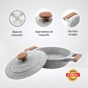 $1,799.00Contenido: – 1 arrocera de 3.6 Lt de capacidad – 1 tapa Material: Aluminio fundido fabricados en una sola pieza (4 mm) Color: Gris – Fabricados con 3 capas de recubrimiento antiadherente de granito y piedra volcanica de alta gama por dentro y por fuera – Antiadherente no toxico libre de PTFE y PFOA de larga duracion – Base de induccion de conduccion magnetica – Asas de baquelita suave al tacto para un agarre comodo y seguro – Tecnologia antiescurrimiento en su tapa para evitar humedecer los alimentos – Compatible con estufa de induccion, halogeno, gas y electrica – No se deforma Consideraciones generales: – Lavar con esponja suave – No utilizar fibras abrasivas – Evitar el choque termico – Utilizar utensilios de silicon o nylon para evitar rayaduras – Evitar que el fuego supere la base de induccion – No es compatible con lavavajillas – No es compatible con horno de microondas