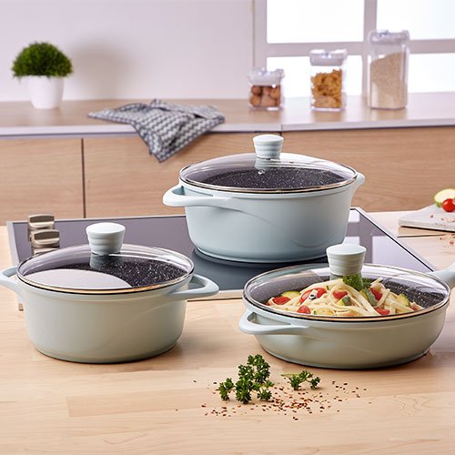 El conjunto incluye una cacerola de 20 cm con tapa, una arrocera de 24 cm con tapa y una cacerola de 26 cm con tapa, todas diseñadas para cumplir con las más diversas necesidades culinarias. Las tapas ajustadas están pensadas para conservar tanto el calor como la humedad, ayudando a potenciar los sabores de tus alimentos. Este detalle no solo mejora el acabado de tus platos, sino también la eficiencia al cocinar. Además, su durabilidad asegura que estas piezas te acompañen en la cocina por muchos años.