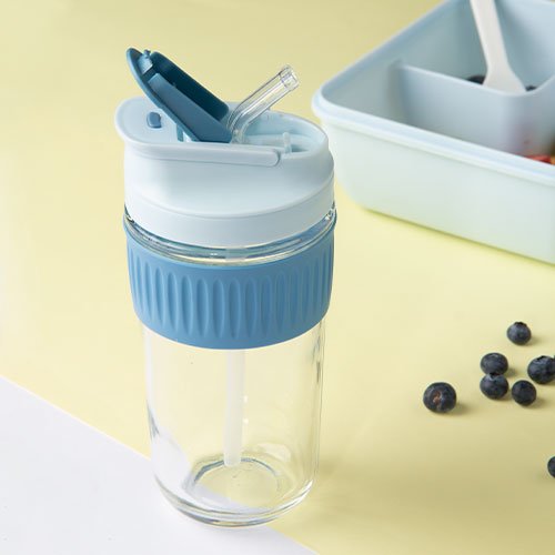Botella de Vidrio Azul: Hidratación Pura y Segura para Pequeños en Movimiento