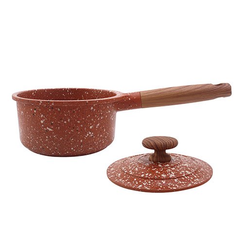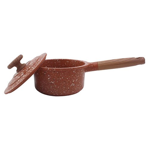 Contenido: – 1 cazo de 16 cm con capacidad de 1.5 Lt – 1 tapa Material: Aluminio fundido fabricados en una sola pieza (4 mm) Color: Anaranjado – Fabricados con 3 capas de recubrimiento antiadherente de granito y piedra volcanica de alta gama por dentro y por fuera – Antiadherente no toxico libre de PTFE y PFOA de larga duracion – Base de induccion de conduccion magnetica – Mango de baquelita suave al tacto para un agarre comodo y seguro – Tecnologia antiescurrimiento en su tapa para evitar humedecer los alimentos – Compatible con estufa de induccion, halogeno, gas y electrica – No se deforma Consideraciones generales: – Lavar con esponja suave – No utilizar fibras abrasivas – Evitar el choque termico – Utilizar utensilios de silicon o nylon para evitar rayaduras – Evitar que el fuego supere la base de induccion – No es compatible con lavavajillas – No es compatible con horno de microondas