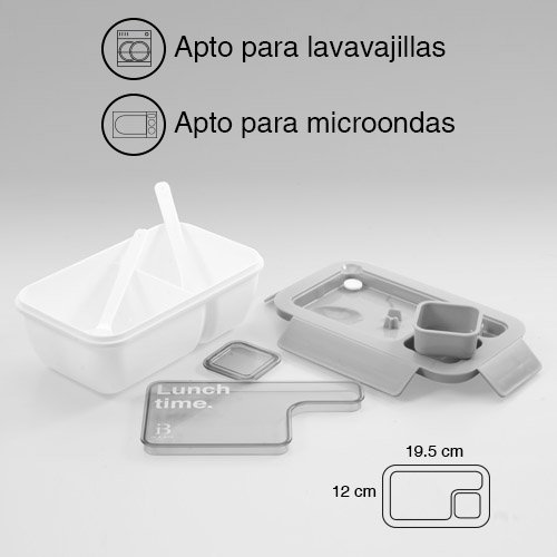 • Color: Tapa gris / Cuerpo y cubiertos blancos.