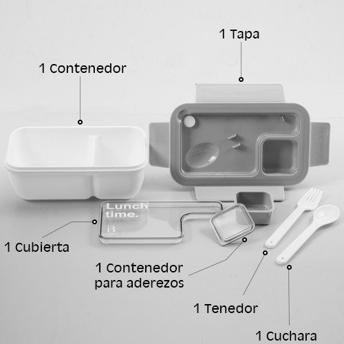 • Contenido: 6 piezas (Contenedor, división, tapa, cubierta, cuchara y tenedor).