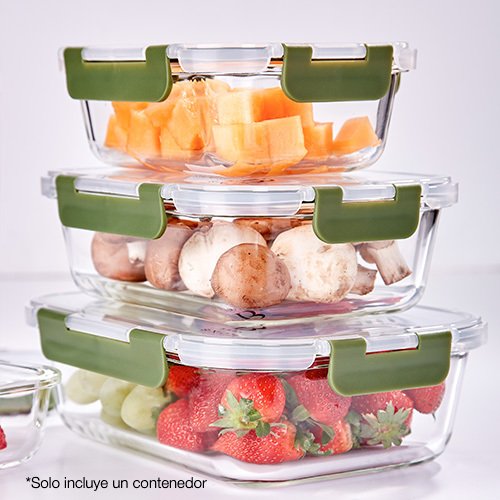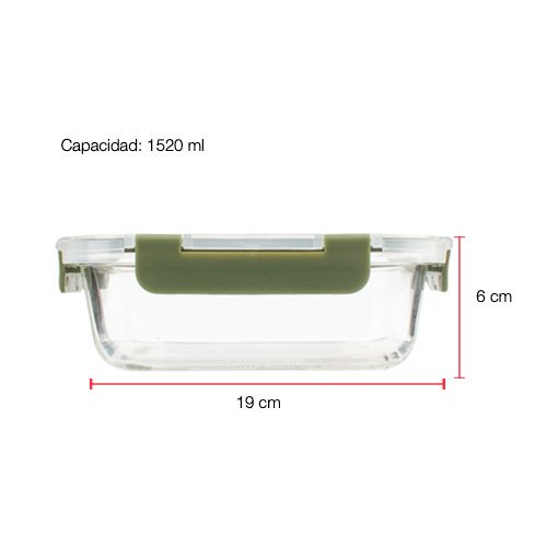 Maximiza tu espacio con el Oriol1520. Capacidad de 1.5L, vidrio resistente y tapa hermética verde olivo. Libre de BPA, apto para microondas y antifugas. ¡Compra ahora!
