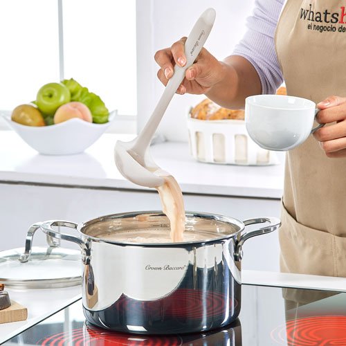 Contenido: 1 cucharón Material: Silicón y nylon de alta calidad Tamaño: 27.5×5.7 cm Color: Gris elegante Durabilidad: Resistente al calor y fácil de limpiar Practicidad: Ideal para servir sopas, guisos y platillos líquidos sin dañar tus utensilios de cocina Estilo: Diseño moderno y funcional, perfecto para cualquier cocina Versatilidad: Perfecto para usar en sartenes y ollas antiadherentes o de diferentes tamaños