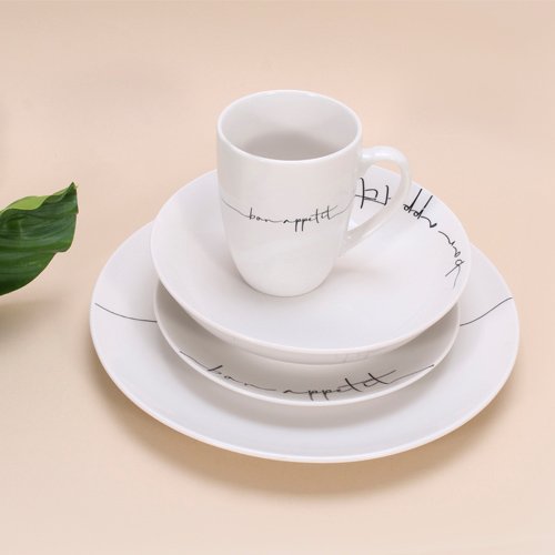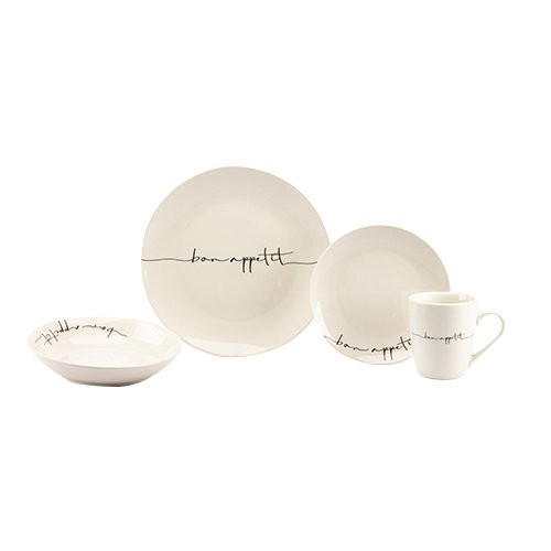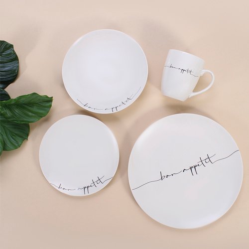 Inlcuye: 1 plato trinche (26.5cm) 1 plato sopero (20cm) 1 plato ensaladero (19 cm) 1 taza (315 ml)