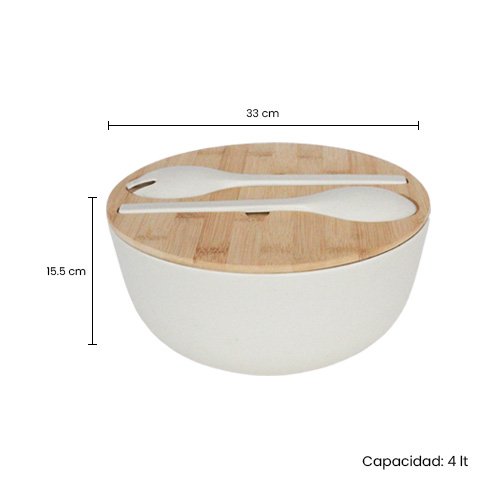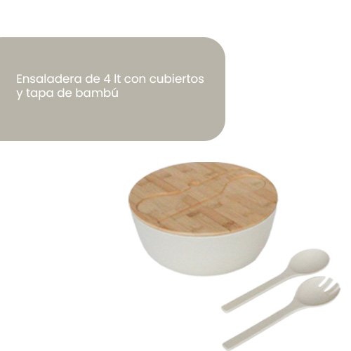 ENSALADERA DE 4L CON CUBIERTOS Y TAPA DE BAMBU