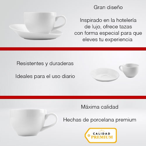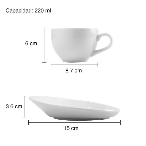 Cada taza incluida en el set tiene una capacidad de 220 ml, perfecta para disfrutar tus bebidas calientes favoritas como café, té, o infusiones. Los platos complementarios no solo son útiles para acompañar con galletas o bocadillos, sino que también aportan un aire distinguido a cualquier sobremesa. Estos elementos combinan diseño ergonómico y sofisticación, haciendo que sean ideales para ocasiones especiales y también para uso diario.