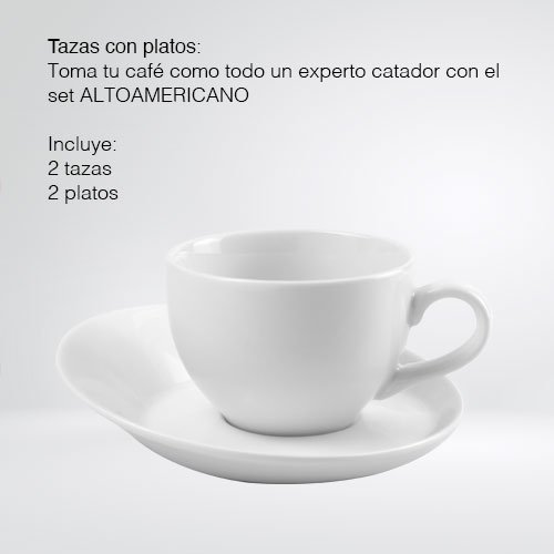 JUEGO DE 2 TAZAS PARA CAFE AMERICANO CON PLATOS DE PORCELANA PREMIUM