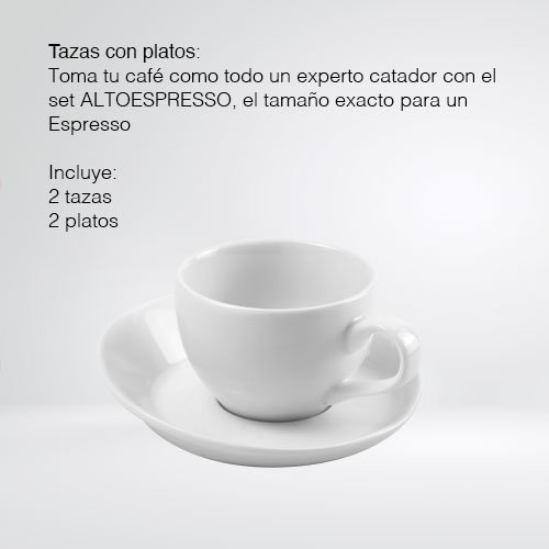 JUEGO DE 2 TAZAS PARA CAFE ESPRESSO CON PLATOS DE PORCELANA PREMIUM