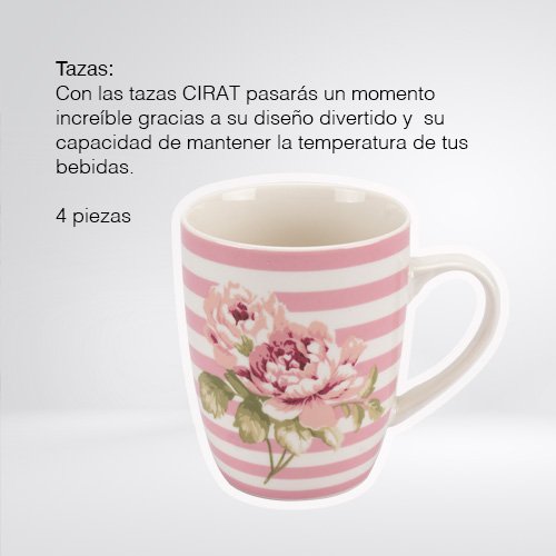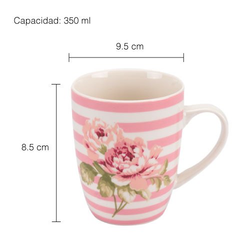 Contenido: – 4 tarros de 350 ml Material: Porcelana Consideraciones generales: – Lave con esponja suave – Apto para microondas – Apto lavavajillas