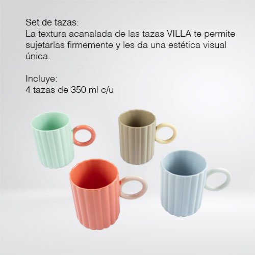 Este set de 4 tazas de porcelana combina un diseño moderno y minimalista, perfecto para cualquier estilo de cocina o mesa. Con líneas limpias y un acabado liso, estas tazas no solo son funcionales, sino también estéticamente agradables. Su encanto elegante las convierte en un complemento ideal tanto para uso diario como para cualquier ocasión especial.