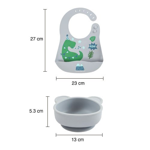 Set de Tazón y Babero de Silicón Azul | 330ml y Diseño Dinosaurio