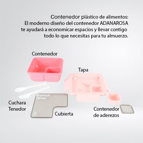 Haz que la hora del almuerzo sea el momento favorito del día con el lunchbox ADANAROSA. Este sistema integral de alimentación infantil combina un diseño vibrante en color rosa con la funcionalidad de una Bento Box profesional, permitiendo que los niños disfruten de una comida variada, fresca y organizada en la escuela, excursiones o paseos.
