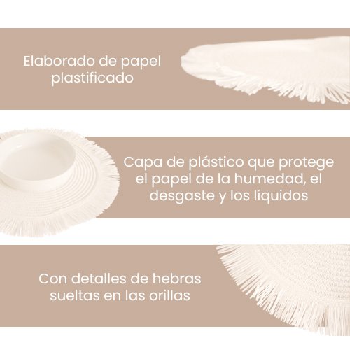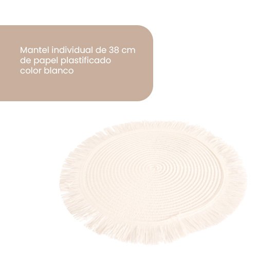 MANTEL INDIVIDUAL DE 38 CM DE PAPEL PLASTIFICADO COLOR BLANCO
