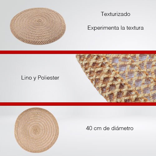 Características: Material: Poliéster de alta calidad, resistente y duradero. Tamaño: 40 cm, ideal para un servicio individual. Diseño práctico: Color crudo, adaptable a cualquier decoración. Fácil mantenimiento: Lavable, resistente a manchas y de secado rápido.
