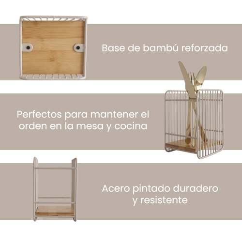 PORTACUBIERTOS DE ACERO Y BAMBU