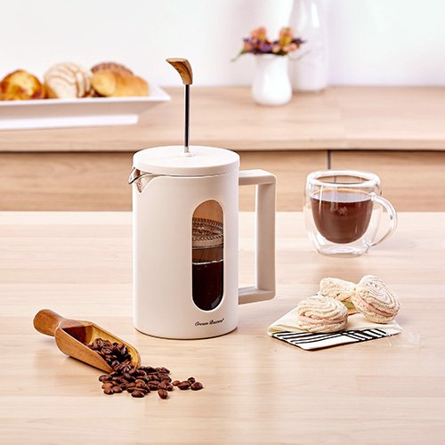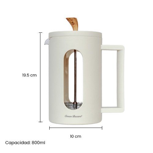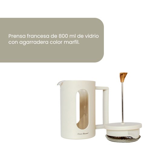 PRENSA FRANCESA DE 800 ML DE VIDRIO CON AGARRADERA COLOR MARFIL