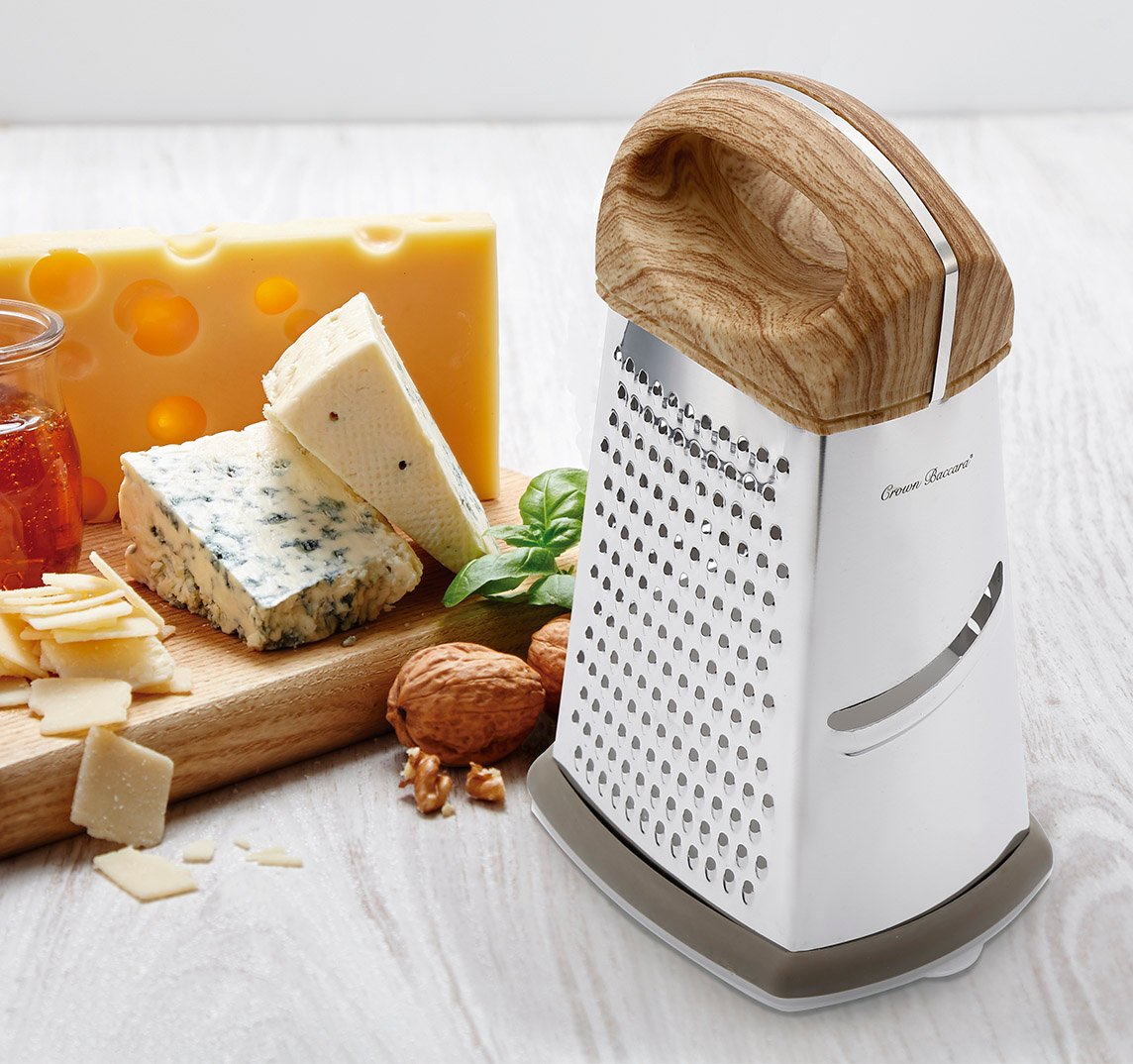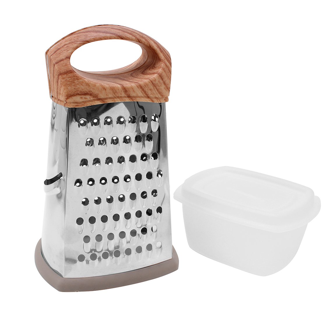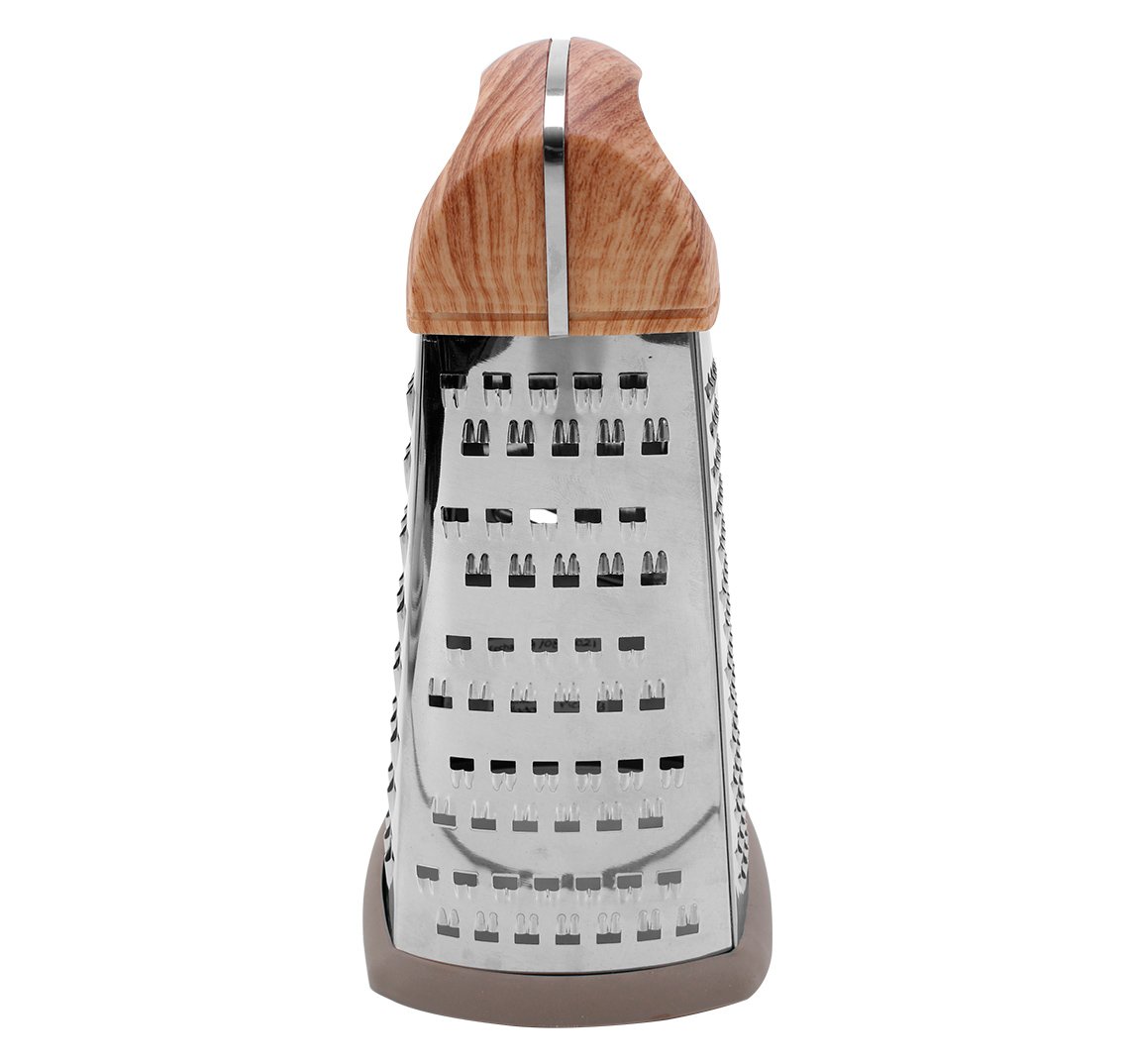 El rallador está fabricado con acero inoxidable de alta calidad, garantizando una larga vida útil incluso en uso frecuente. Su mango de plástico ergonómico proporciona un agarre seguro y cómodo, reduciendo el esfuerzo durante el rallado. Ya sea para frutas, verduras, quesos o chocolate, este rallador se adapta perfectamente a sus manos, brindando una experiencia sin igual.