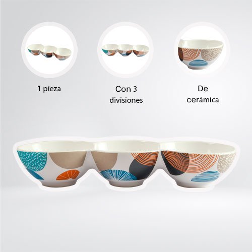SALSERO DE CERAMICA DE 25 CM CON 3 DIVISIONES