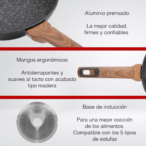 La agarradera con soft touch es otro de los puntos fuertes de este producto. Ofrece un agarre cómodo y seguro, permitiéndote manejar la sartén con total confianza mientras cocinas. Ya sea que estés preparando una comida para la familia o un platillo individual, este modelo está diseñado para hacer que cocinar sea más placentero y práctico.