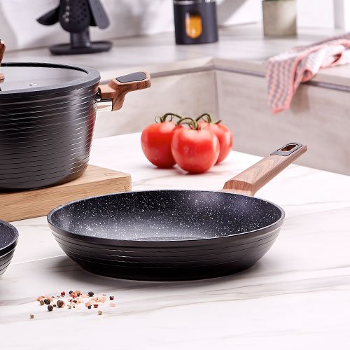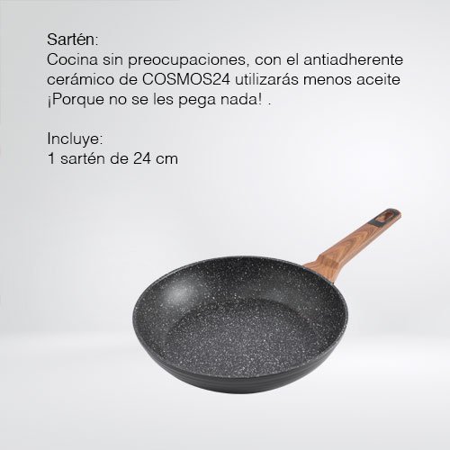 Esta sartén de 24 cm ha sido diseñada pensando en quienes valoran una herramienta de cocina eficiente y fácil de usar. Con una base de inducción avanzada, asegura una distribución uniforme del calor para que cada receta, desde omelets hasta carnes, se cocine a la perfección. Además, su diseño moderno en color negro no solo luce elegante, sino que también añade un toque estilizado a cualquier cocina.