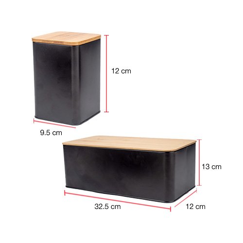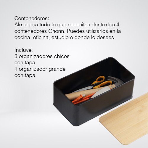 Set Orionn: 4 Organizadores de Metal Negro con Tapa de Bambú | Moderno