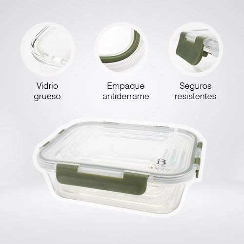 Resistencia Térmica: Los recipientes de vidrio son aptos para horno de microondas (sin tapa) y cambios moderados de temperatura.