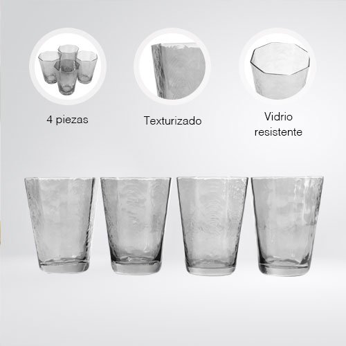 Material: Vidrio Capacidad: 310 ml 4 pzas