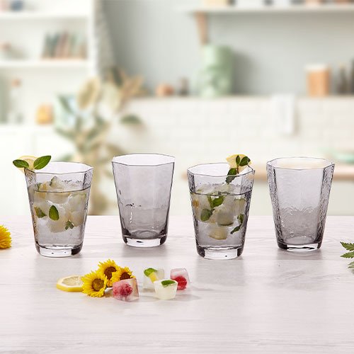 SET DE 4 VASOS CORTOS DE 310 ML DE VIDRIO GRIS