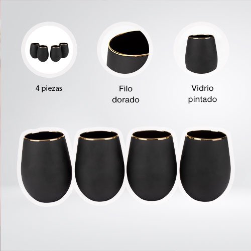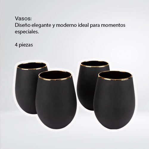 SET DE 4 VASOS DE 550 ML DE VIDRIO NEGRO