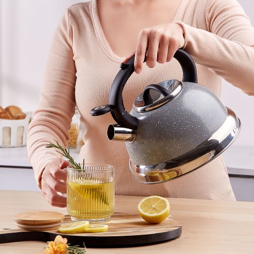 Equipada con un mecanismo de botón de apertura, esta tetera facilita el proceso de verter agua caliente de forma controlada y segura. Su diseño ergonómico permite un agarre cómodo y fiable, ofreciendo una experiencia de uso sin complicaciones y completamente ajustada a tus necesidades. Ideal tanto para uso diario como para ocasiones especiales con invitados, la tetera AVINON redefine lo práctico y lo estético.